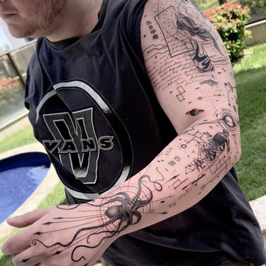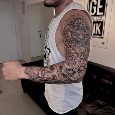 Tatuador especialista em tatuagem fine line e arte geométrica em Fortaleza - Ceará, criando projetos autorais que transformam histórias de vida em arte personalizada. Sua técnica precisa e sensibilidade artística garantem tatuagens que respeitam a anatomia, o estilo e a individualidade — de mini tattoos delicadas a fechamentos completos com alto nível de detalhamento.