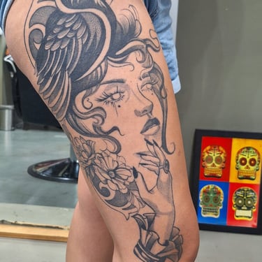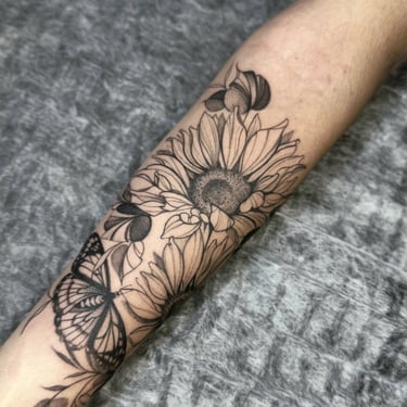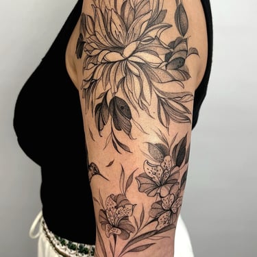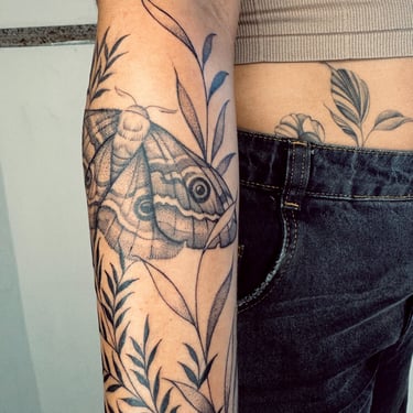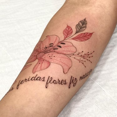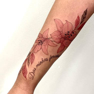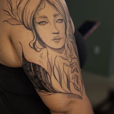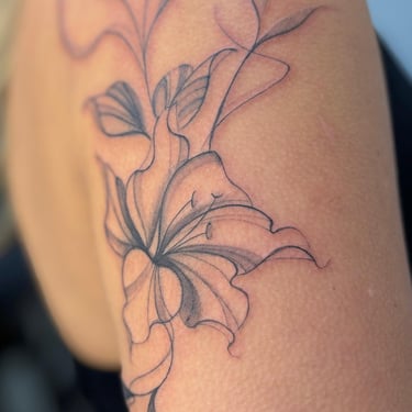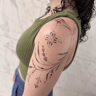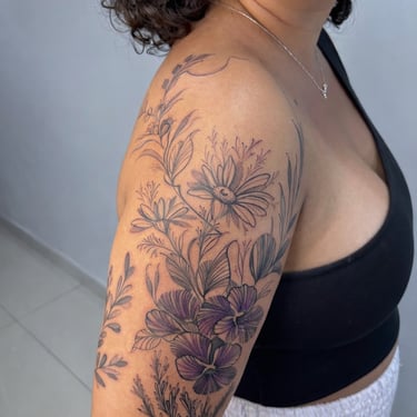 Tatuadora fine line, pet, anime, blackwork, floral e botânica em Fortaleza, criando composições autorais ricas em detalhes e significado. Seu trabalho combina técnica, sensibilidade e estudo anatômico para transformar memórias, afeto e conexão com a natureza em tatuagens exclusivas e atemporais.
