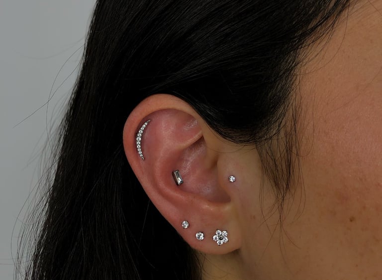 Nosso serviço de piercing une estética, segurança e tecnologia, com materiais esterilizados e joias em titânio hipoalergênico, leve e altamente compatível com o corpo, favorecendo uma cicatrização mais tranquila.
